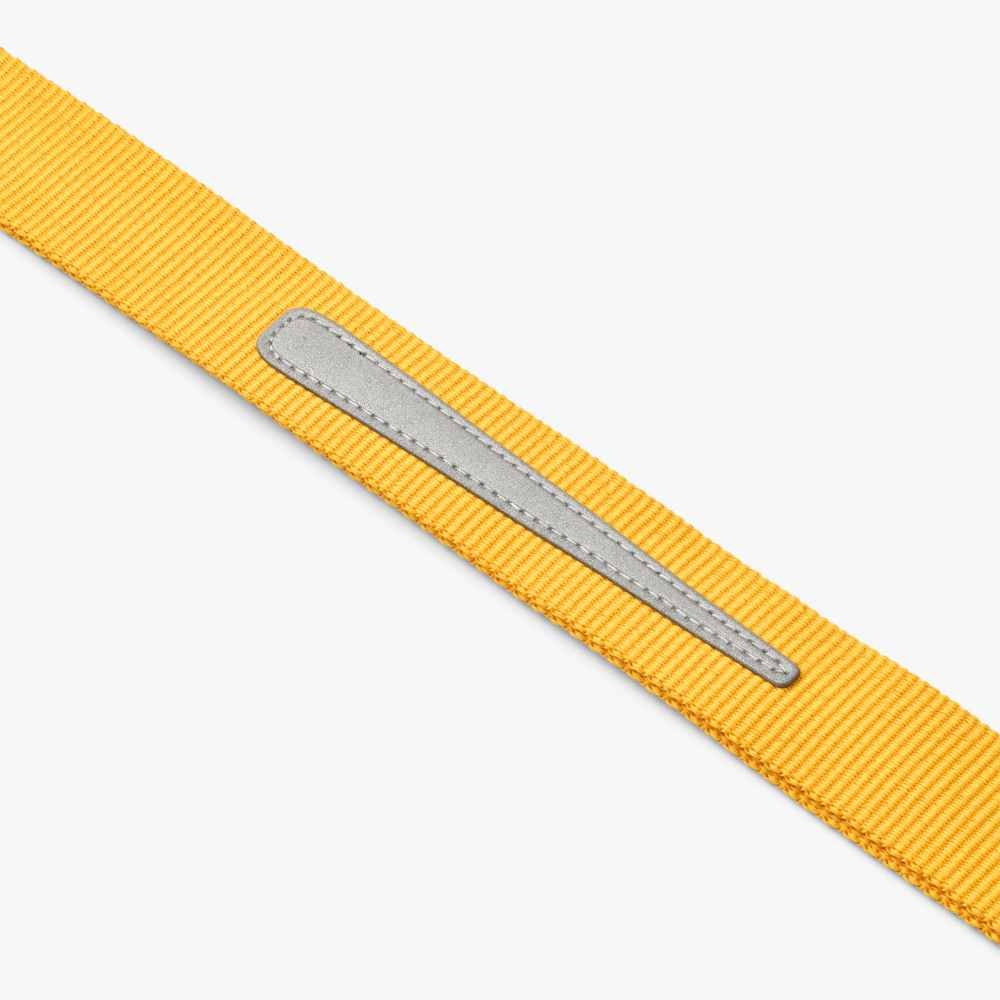 Een veelzijdige sterke gele hondenriem voor de actieve hond, met een afneembaar tasje voor poepzakjes / snacks. Lengte 160 cm. Model 2024.