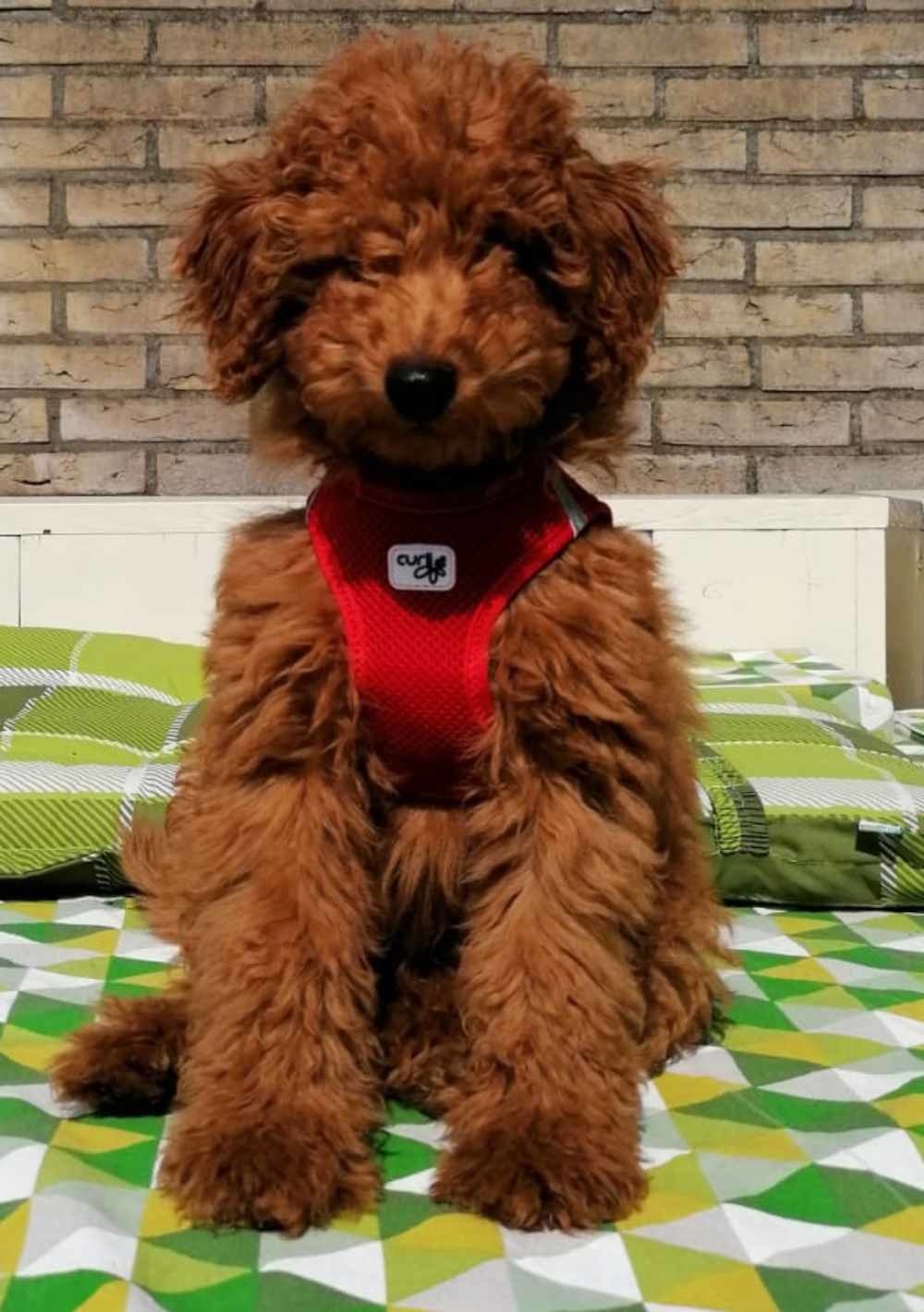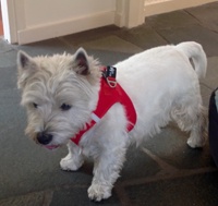 A lightweight red dog harness of good air mesh material that allows air to pass through and can also be used as a cool harness. Available in different sizes.