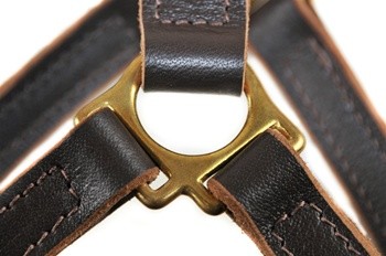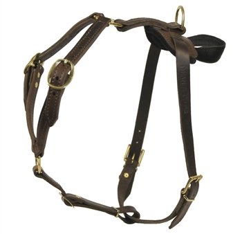 A handmade dog harness of durable and supple leather for the larger breeds. A lightweight armor without a breastplate, so suitable for longer distances.