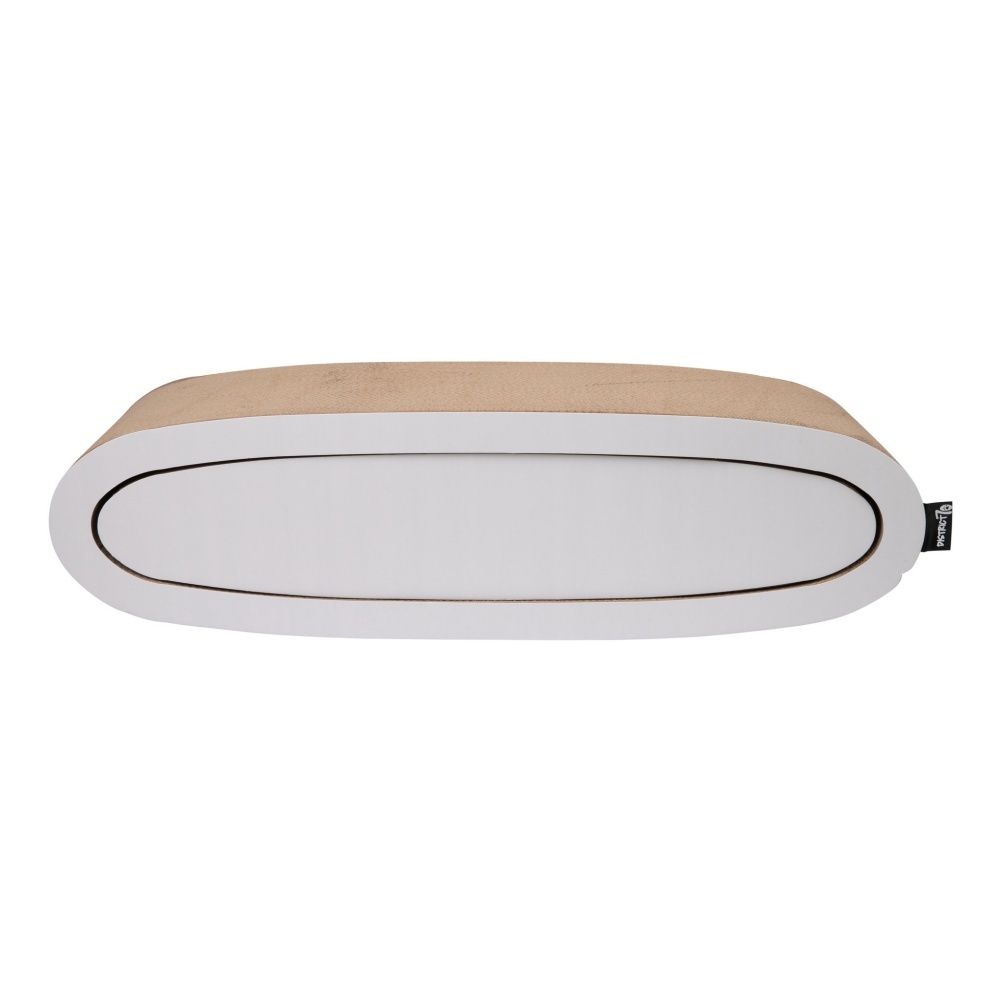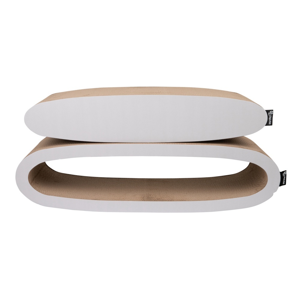 An oval design scratching furniture, made of durable and high-quality corrugated cardboard, which consists of two scratching furniture.