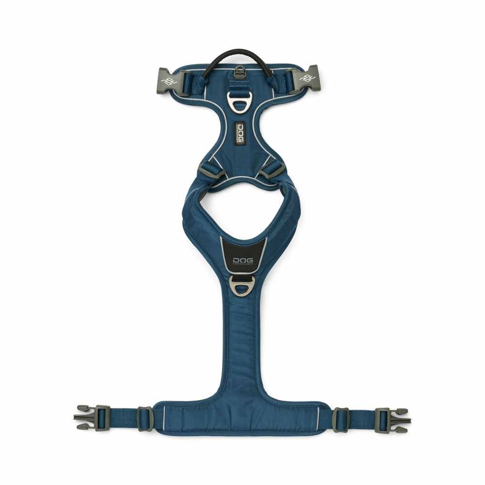 A comfortable and strong blue dog harness, for the active dog, with a soft lining and an ergonomic design. Version 2024.
