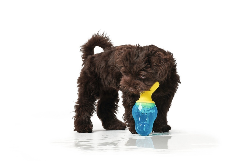 Curious and happy, your four-legged friend will examine the icy toy and soon realize that cool water escapes from the small openings while playing. The toy is also ideal for puppies and young dogs that change teeth. Chewing the proven TPR (thermoplastic rubber) material gently can have an analgesic and beneficial effect.
