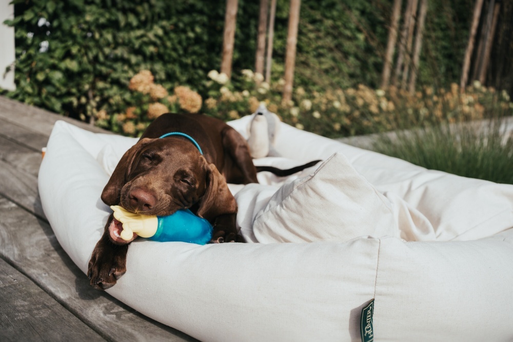 This innovative dog toy in the shape of an animal figure you fill with water, freeze it and on the hot days it cools your dog down while he plays with it.