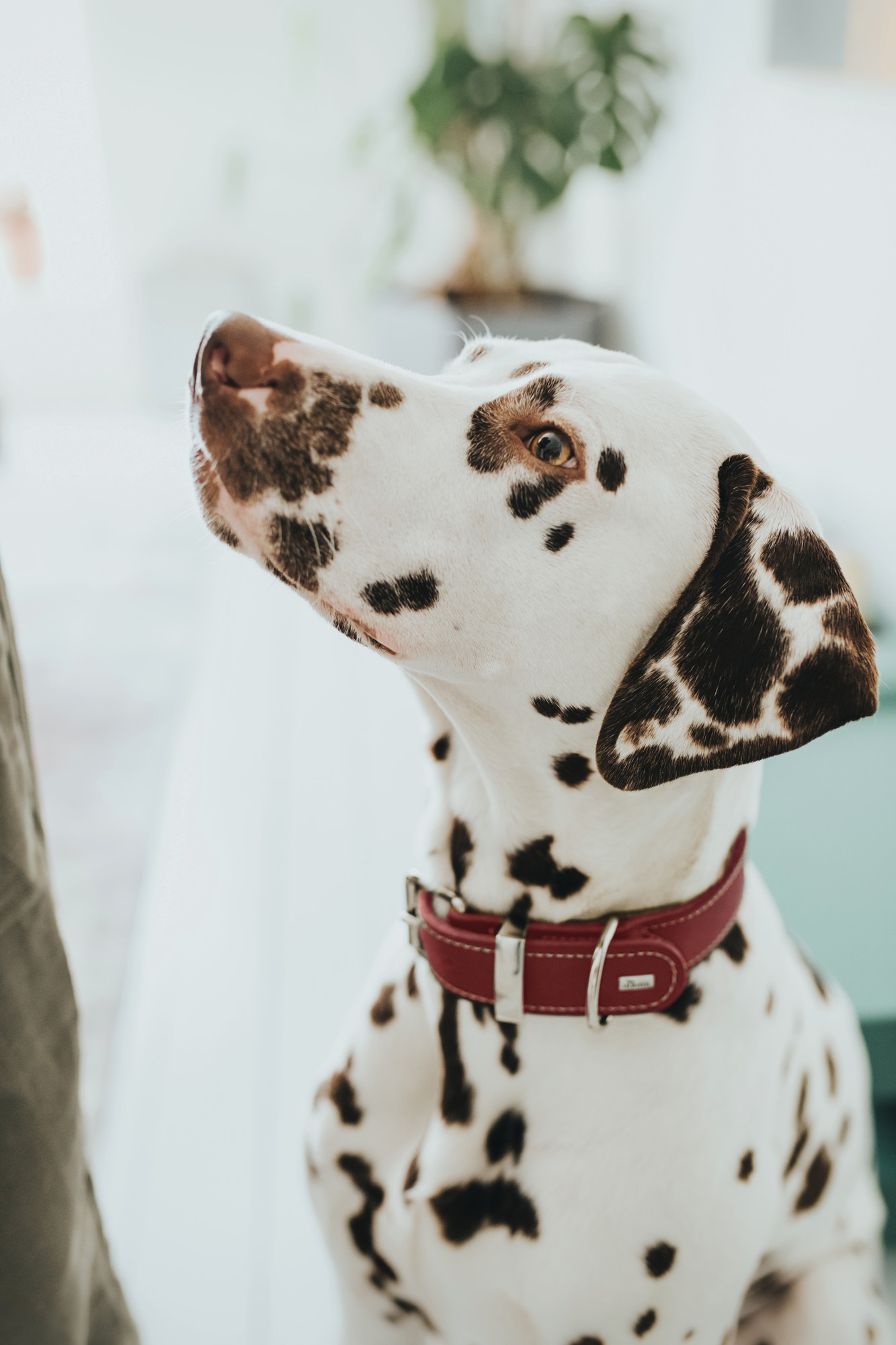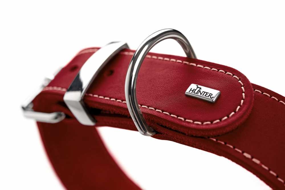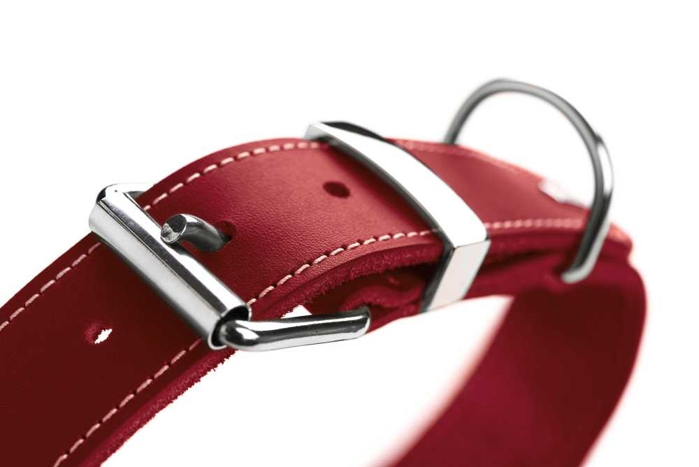 An elegant red dog collar that is made from durable nappa leather. The collar is extra wide.