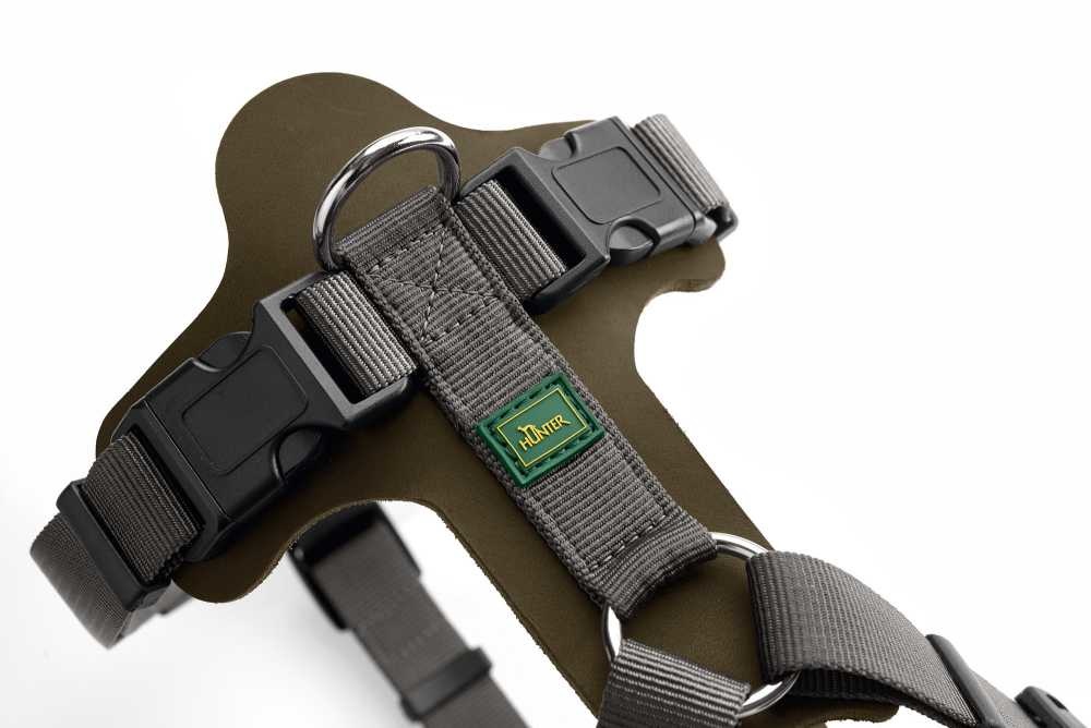 It’s in the mix! Carefully selected cowhide leather and pleasantly soft nylon form a perfect symbiosis in this latest Hunter dog harness. The combination of these two materials has proven to be ideal in numerous tests: the harness is light and suitable for everyday use, but has quilted lining with soft cowhide leather on the pressure points. This means that you and your four-legged friend can enjoy the natural comfort of a leather harness, along with the light weight and ease of maintenance of nylon.