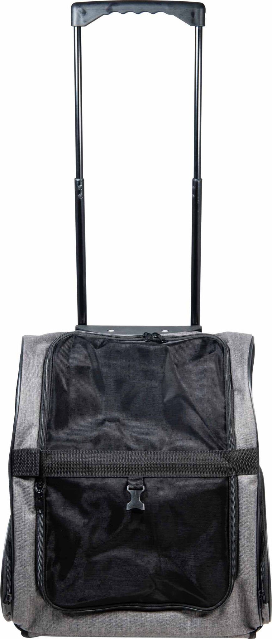 A beautiful dog bag with wheels and a pull rod, suitable for smaller dogs up to 8 kg. Dimensions 40 x 26 x 40 cm.