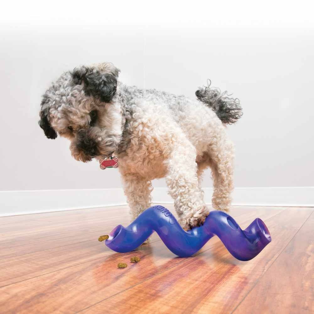 Give your dog hours of fun and mental stimulation with the KONG® Treat Spiral! This unique treat dispenser is designed to challenge your furry friend both physically and mentally. The spiral structure creates unpredictable movement, making releasing treats an exciting game.