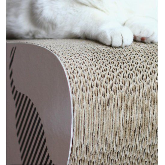A modern and elegant design white cat scratcher, made entirely by hand. It is made of corrugated cardboard, of which cats are very fond. The beautiful design makes the unit into a real eye-catcher in any interior.