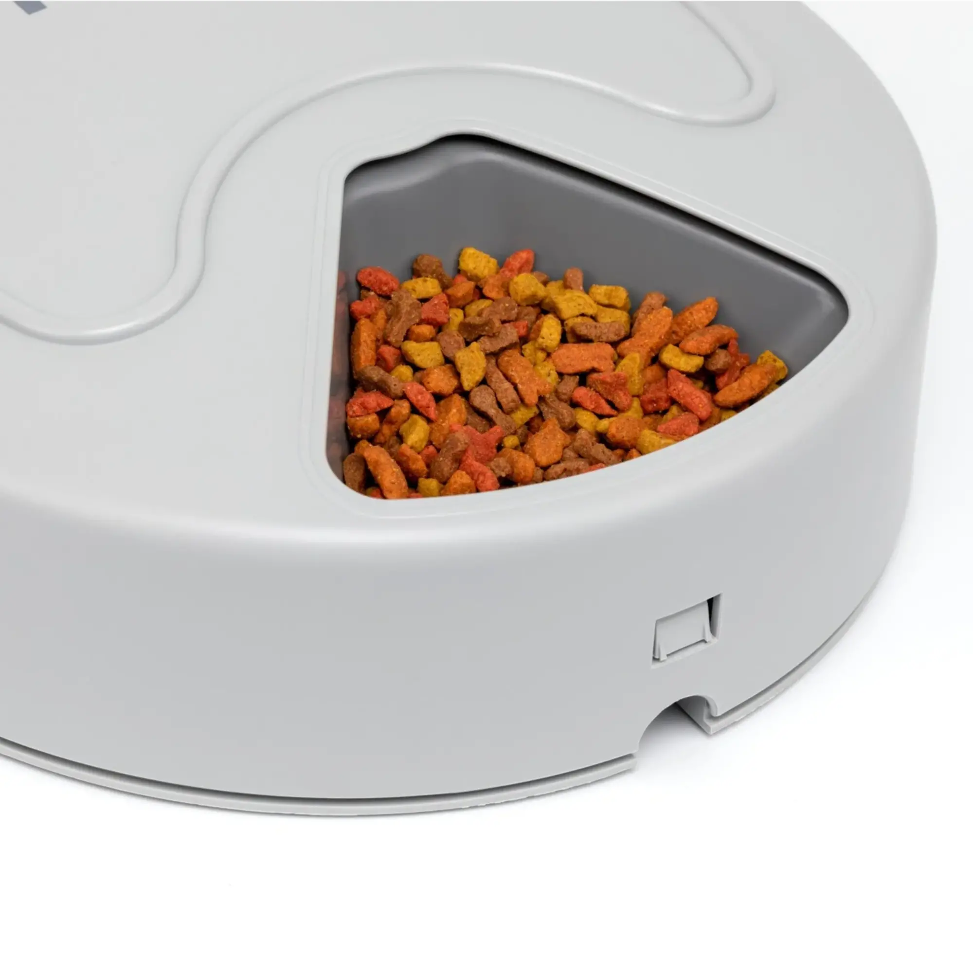 While you are not at home, you can use this handy fully automatic feeder with five bowls to  ensure that your pet can eat on time. The bowl has an electronic timer with a LCD display. You can program each bowl to open at a specific time. At the set time, the bowl automatically opens.Â