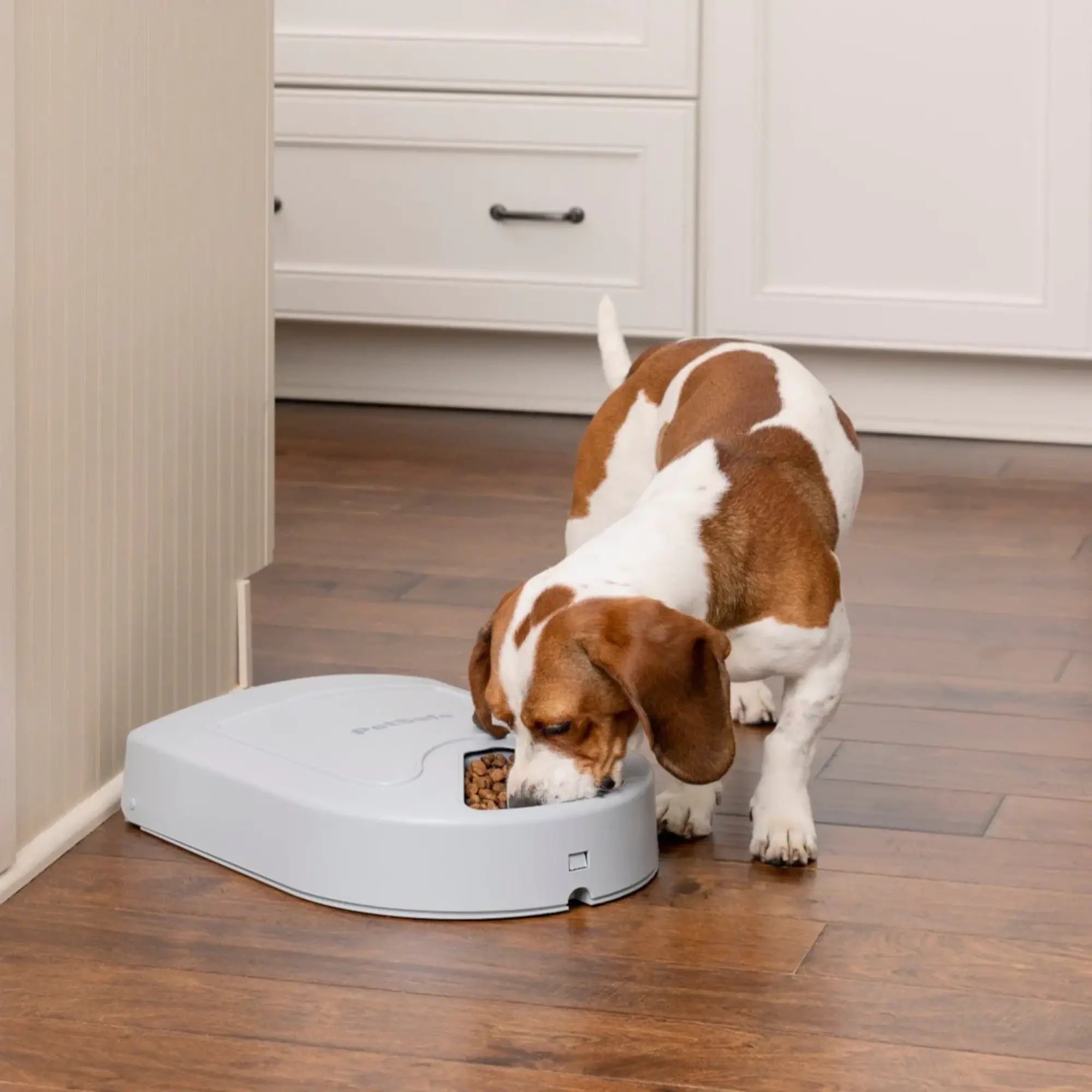 A double feeder with adjustable timers so that even in your absence the dog or cat can eat on time.