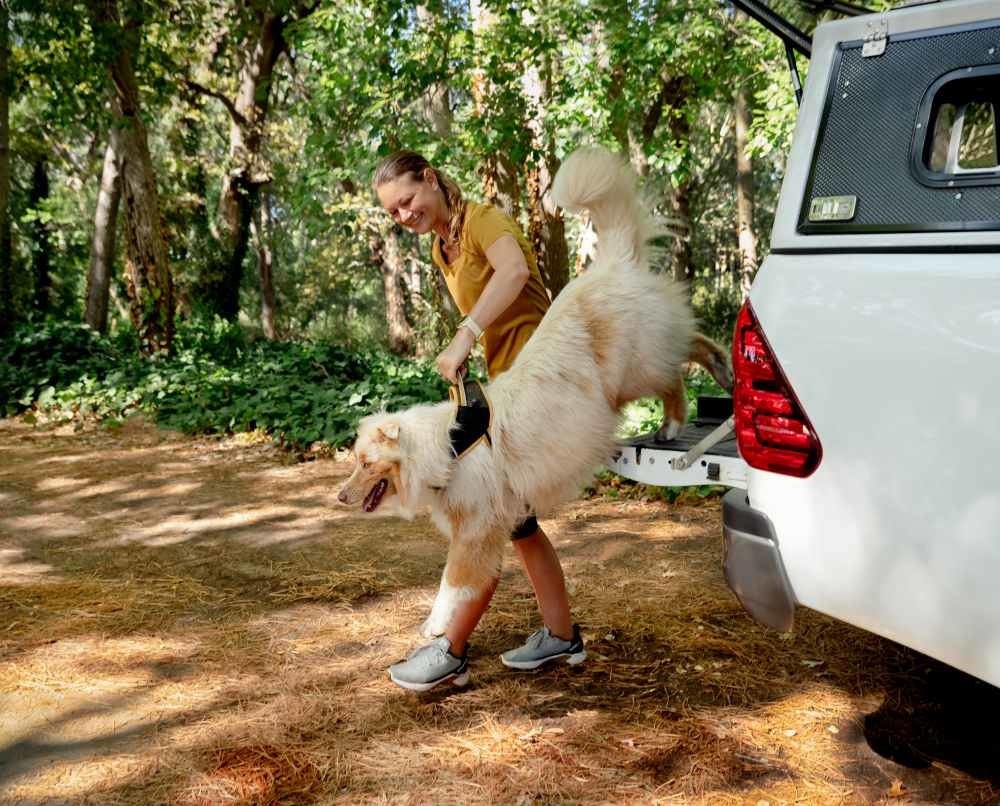 The ergonomic design of the Rogz Air Tech harness makes it quick and easy to put on. A dog leash can be attached to the belay loop on the harness. When using an Air Tech dog leash, the carabiner slides back and forth so that the dog and owner have a lot of freedom of movement. The harness is fully adjustable and has reflective stitching.