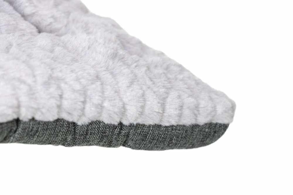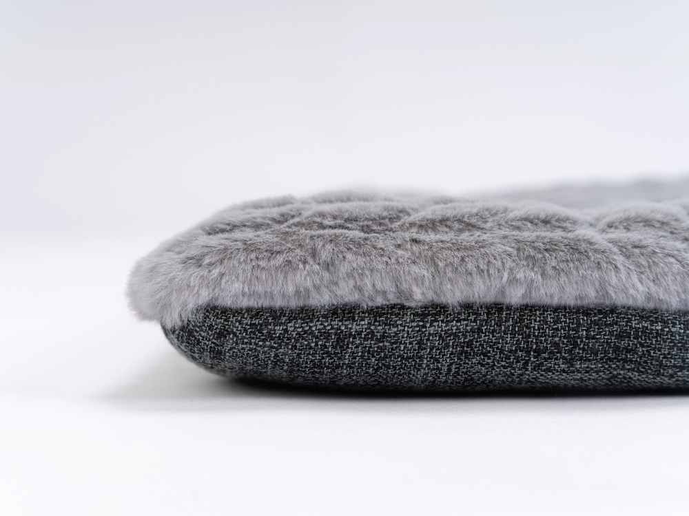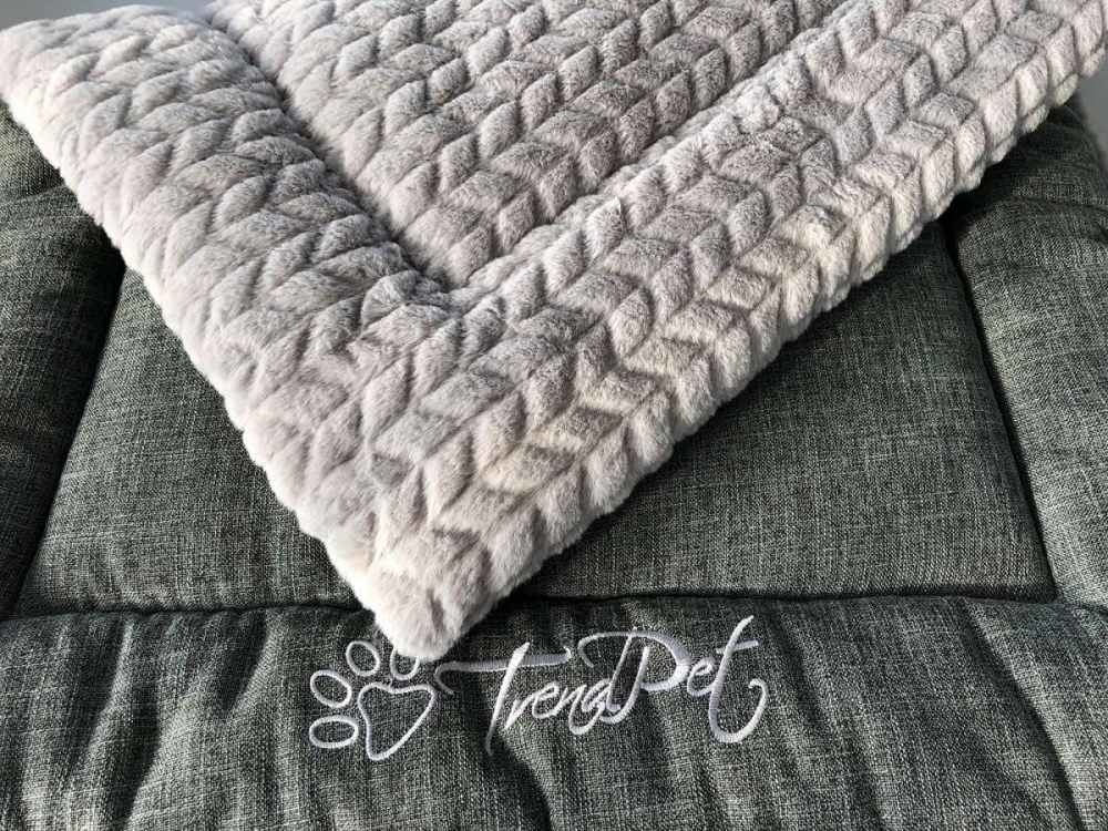 A soft padded grey dog blanket that can be used on both sides, in various sizes.