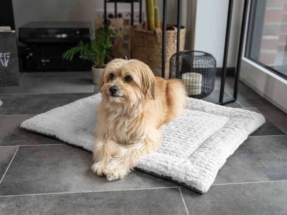 Your dog will love this dog blanket! The nice thing about this dog blanket is that you can use it on both sides for a change. One side is soft and fluzzy, the other side is a nice fine fabric with structure.