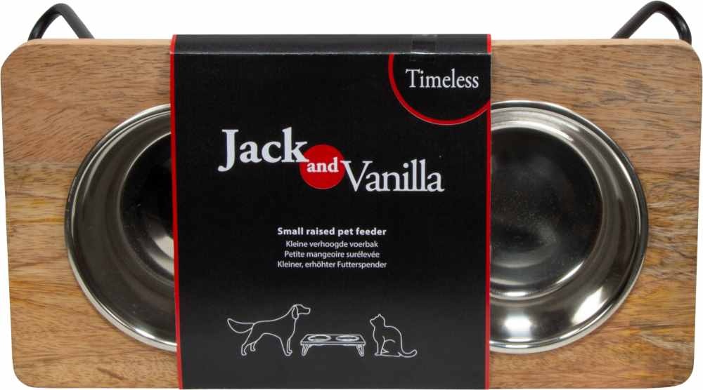 De Jack and Vanilla houten standaard met twee uitneembare RVS bakjes combineert functionaliteit met een prachtig design dat in elk interieur past. In twee maten leverbaar,