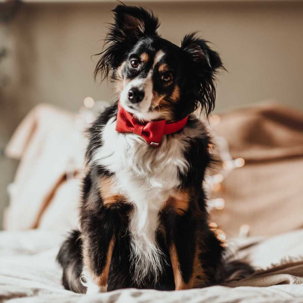 Voor Kerstmis, grote familiefeesten of een speciale verjaardag kan deze handgemaakte rode vlinderdas PARIS eenvoudig op de halsband van de hond worden geschoven en is deze perfect gekleed voor elk soort feest.