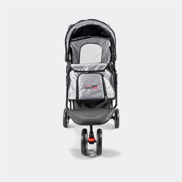 Dit is een stoere hondenbuggy die geschikt is voor honden tot 12,5 kg. De flap aan de voorzijde met het Innopet logo kan geopend worden. De wielen zijn uitgevoerd met ingebouwde vering. De achterwielen hebben een blokkeersysteem. Op het liggedeelte is een wasbaar matje inbegrepen. De buggy is gemakkelijk op te vouwen.
