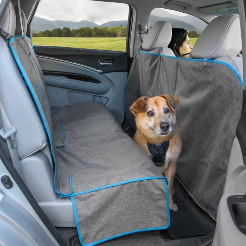 Een fraaie en waterdichte hondendeken die niet alleen de volledige achterbank beschermt, maar ook de vloer en de achterkant van de voorstoelen.