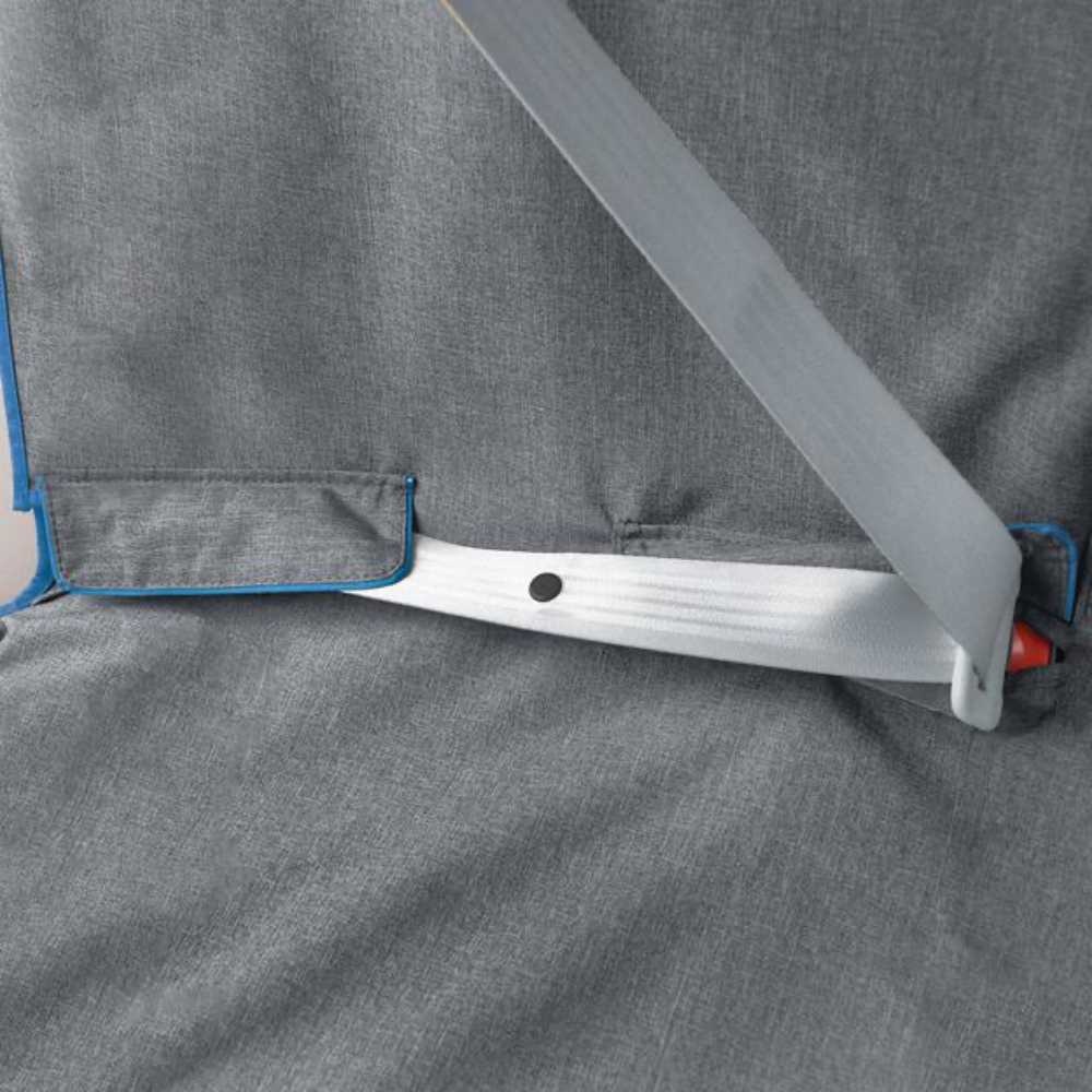 - Opening met klittenband voor toegang tot veiligheidsgordels en vergrendelingssystemen