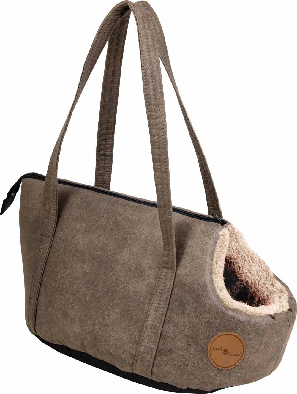 Een mooie bruine schouderdraagtas met een rits over de hele lengte, de neklijn is uitgesneden zodat uw hond de kop naar buiten kan steken. Gemaakt in Europa van prachtig kunstleer.
