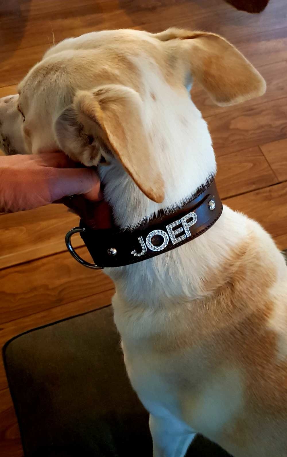 De bruine halsband is gemaakt van dubbellaags leer en is gevoerd met kalfsleer. Wat is er leuker dan een mooie leren halsband met de naam van uw huisdier in fraaie strass letters op de halsband ? Een echt uniek exemplaar voor uw hond, waarmee u en uw hond zeker op zullen vallen !