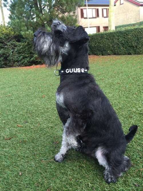 Deze zwarte halsband is gemaakt van dubbellaags leer en is gevoerd met kalfsleer. Wat is er leuker dan een mooie leren halsband met de naam van uw huisdier in fraaie stras letters op de halsband ? Een echt uniek exemplaar voor uw hond, waarmee u en uw hond zeker op zullen vallen !