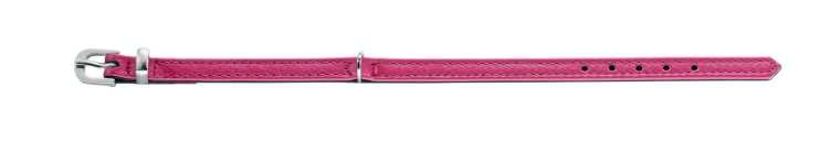 Een hele leuke roze leren halsband, die speciaal is ontworpen voor de kleinere honden. De halsband is gemaakt van nappa leer en is gevoerd met zeer zacht zwart leer, zodat de halsband bijzonder comfortabel is voor de hond. De halsband heeft een vernikkelde gesp en D-ring.