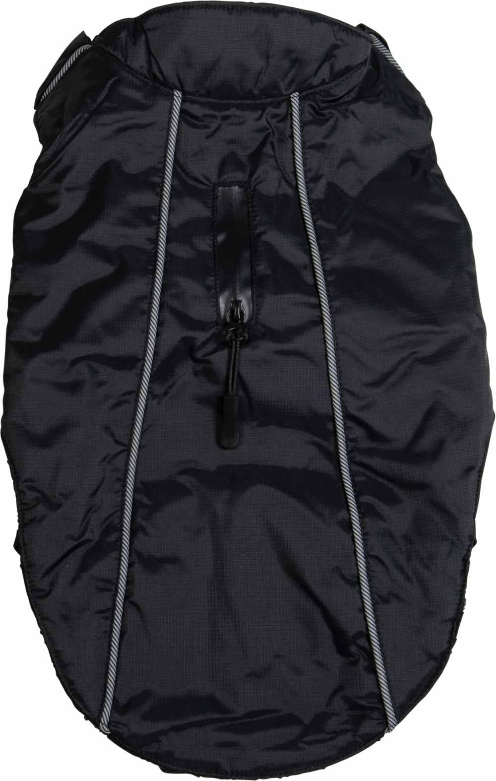 Een comfortabel waterdichte hondenjas, in het zwart uitgevoerd. Het jasje heeft een zachte fleece voering en is voorzien van een rits op de rug. In verschillende maten leverbaar.