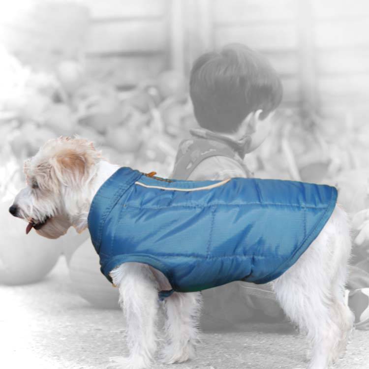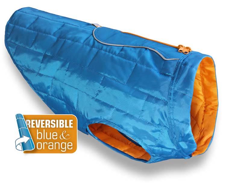Deze fraaie hondenjas is goed geschikt voor de koude maanden van het jaar. Het bijzondere is dat u de jas aan beide kanten kunt gebruiken, waarbij de ene kant in het blauw is uitgevoerd en de andere kant in het oranje. Dit model jas is speciaal ontwikkeld voor de actievere honden, zodat de hond zich gemakkelijk kan bewegen in de hondenjas.