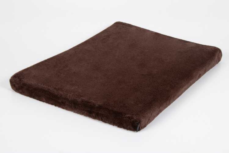 Een luxe bruin hondenkussen met veel ligcomfort, zeer geschikt voor de oudere hond, met een dikke bodem van 5 cm traagschuim.