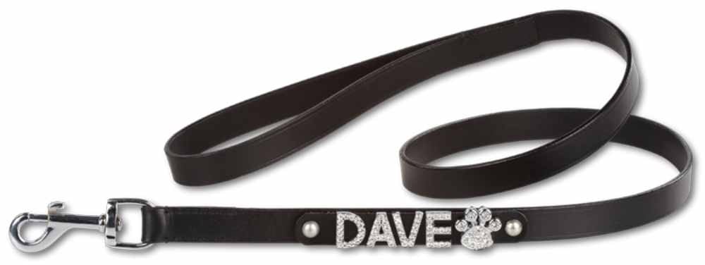 Deze zwarte hondenriem is gemaakt van fraai leer. Wat is er leuker dan een mooie leren hondenriem met de naam van uw huisdier in fraaie stras letters op de lijn ? Een echt uniek exemplaar voor uw hond, waarmee u en uw hond zeker op zullen vallen !