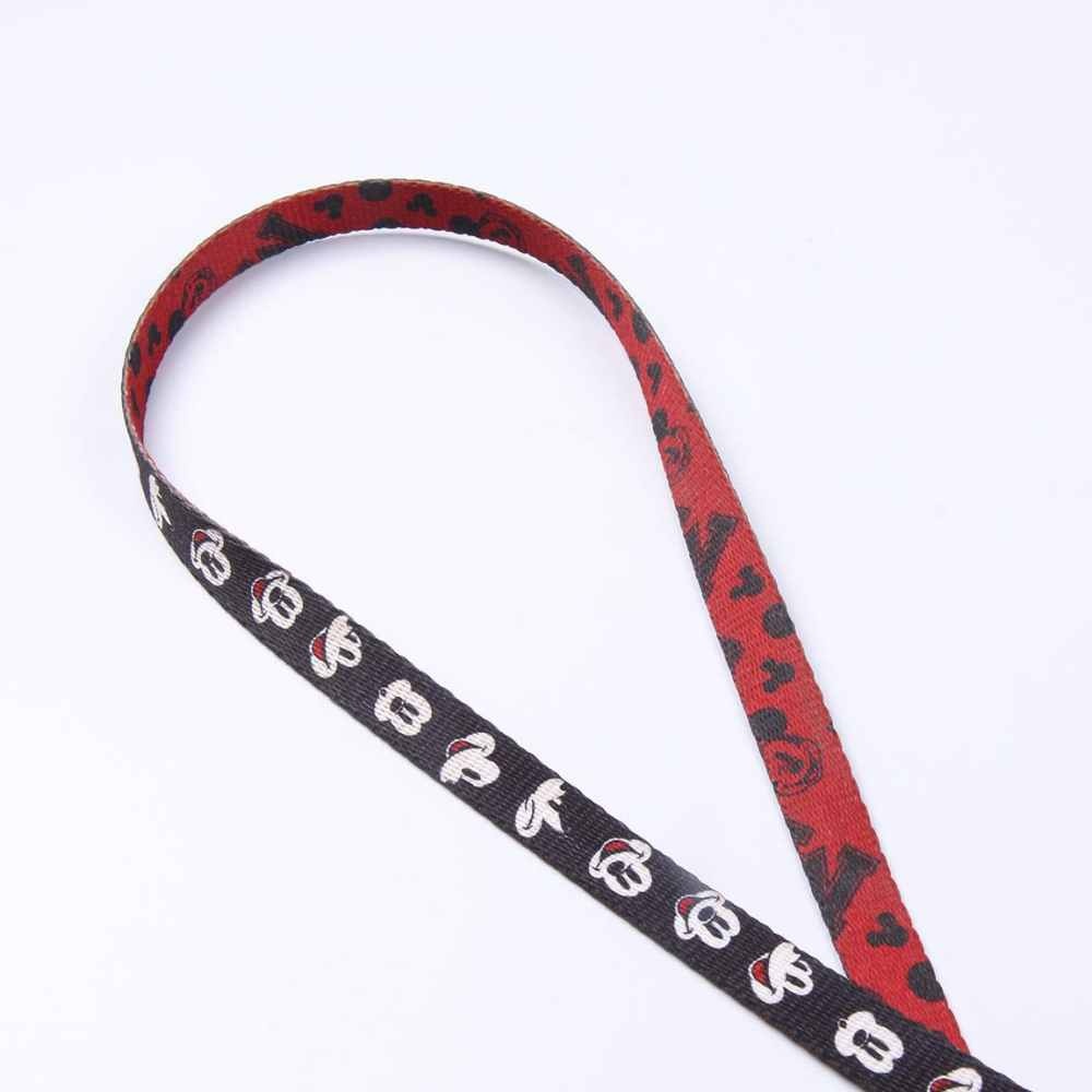 Een leuke zwarte hondenriem van 100% polyester met een print van Mickey Mouse. De riem is voorzien van een handvat en een metalen musketonhaak. Er is keuze uit twee maten.
