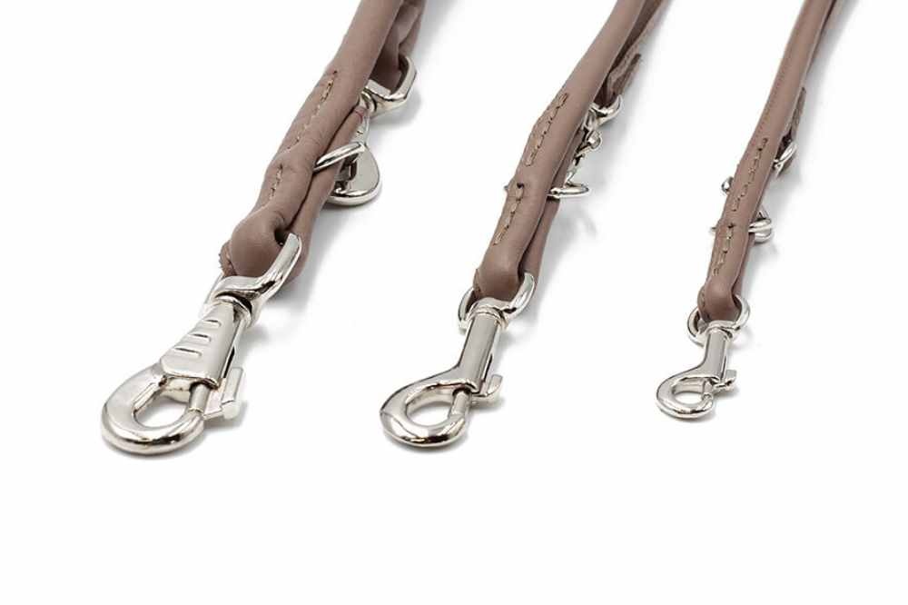 Ben je op zoek naar een verstelbare hondenriem die zowel stijlvol als functioneel is? Dan zijn de rondgenaaide lederen hondenriemen van MAUL, precies wat je nodig hebt! In taupe, lengte 2 meter, diverse breedtes.