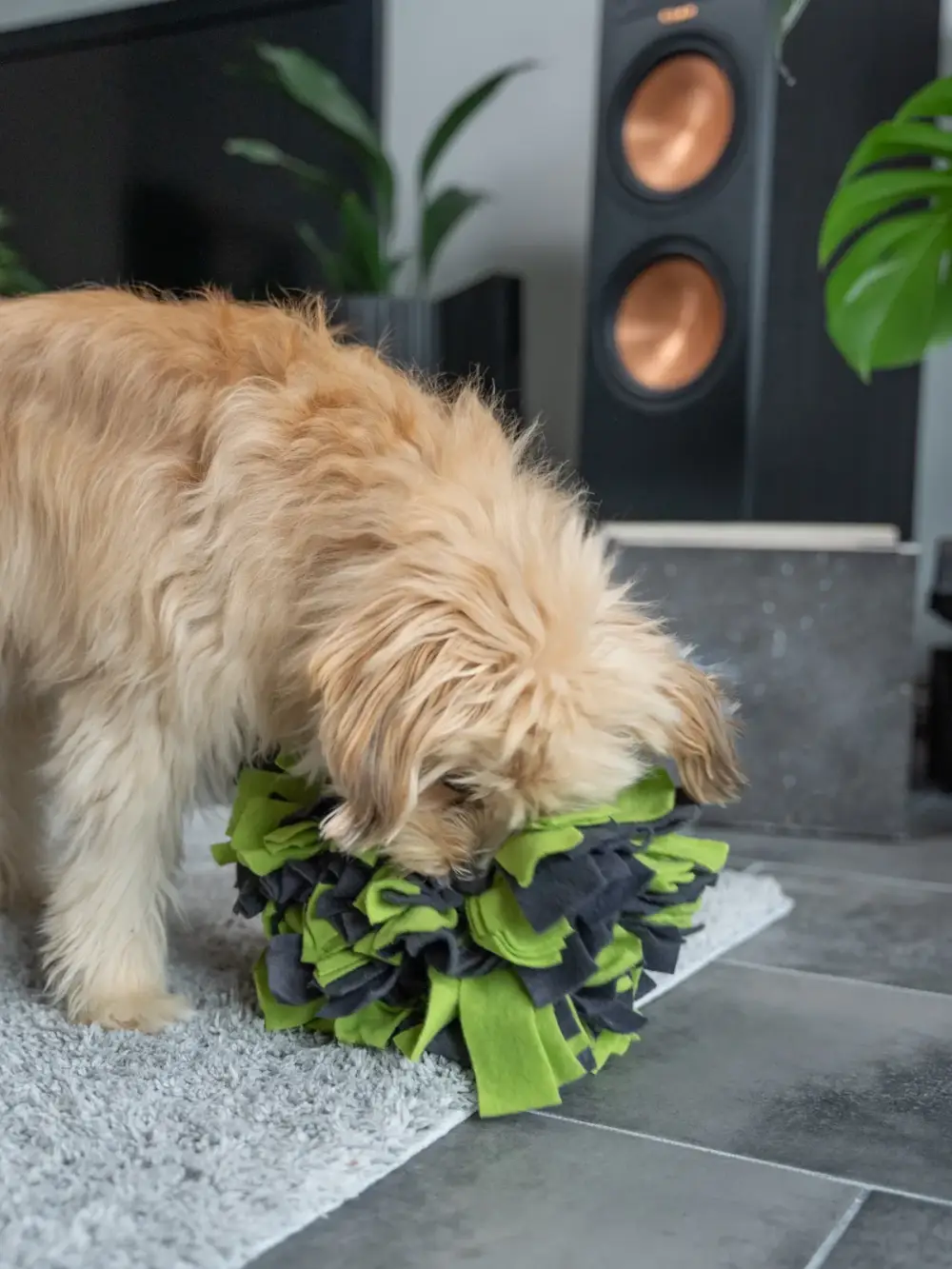 Mentale Uitdaging: Dit speelgoed daagt de geest van je hond uit. Je stopt tussen het vilt wat lekkere snacks voor de hond. Je hond zal zijn best moeten doen om de traktaties te vinden, wat zorgt voor een mentale uitdaging.