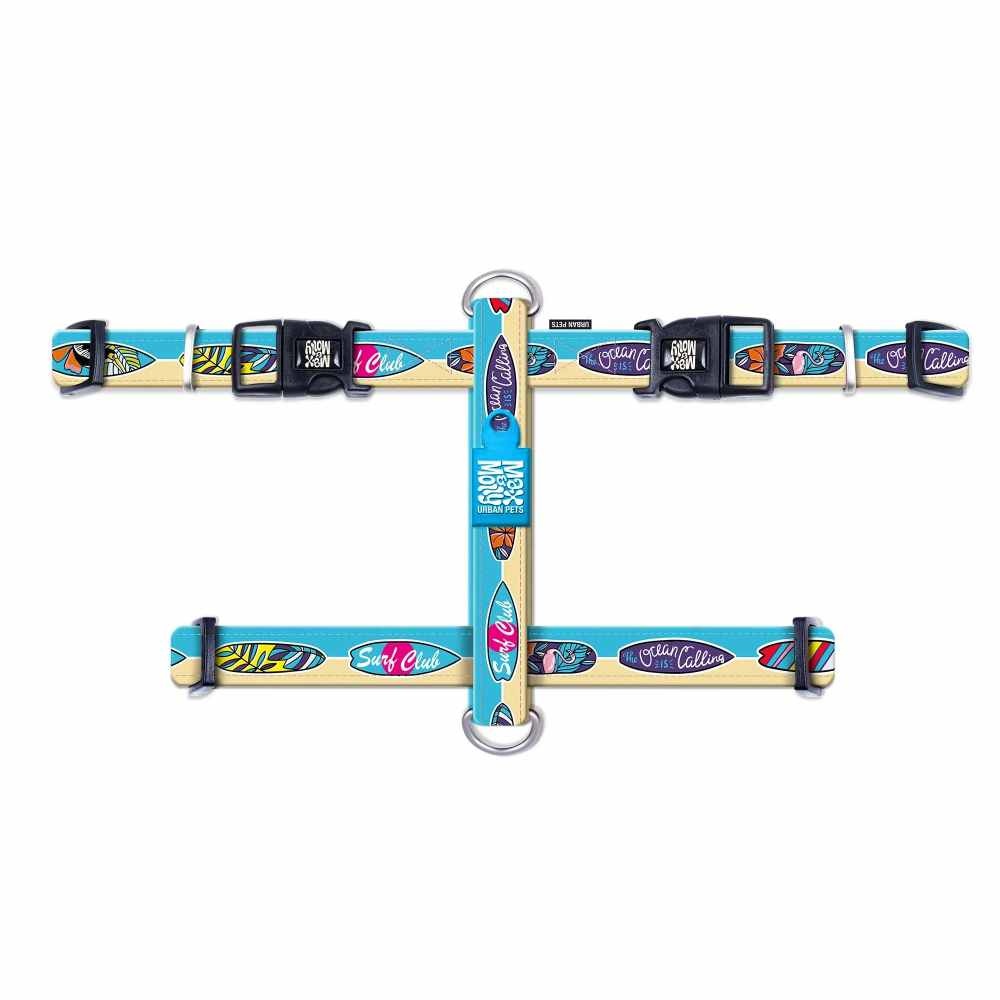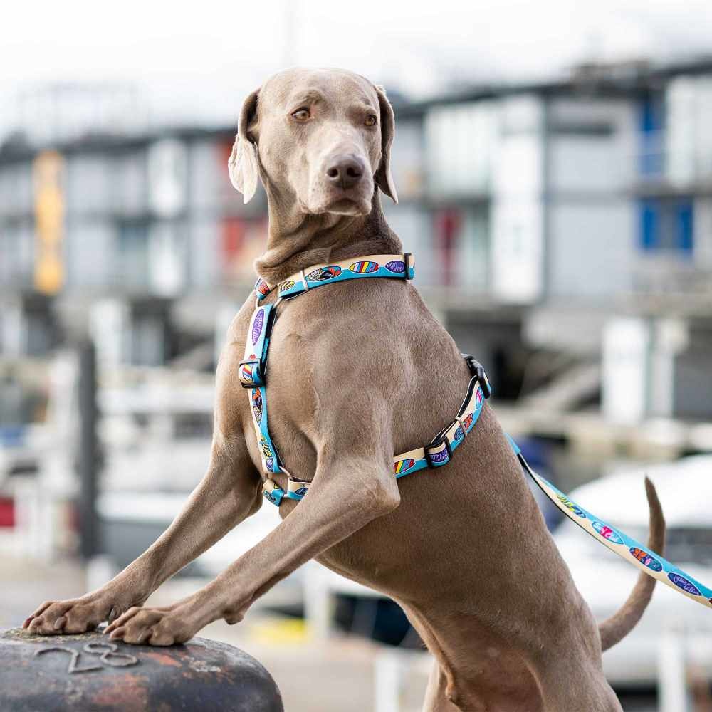 Een hip en opvallend hondentuig in een leuke tropische print, met een binnenvoering van neopreen. Het tuig kan op drie plaatsen wordt versteld. Het tuigje heeft twee D ringen op de rug en twee sterke kliksluitingen. In diverse maten leverbaar
