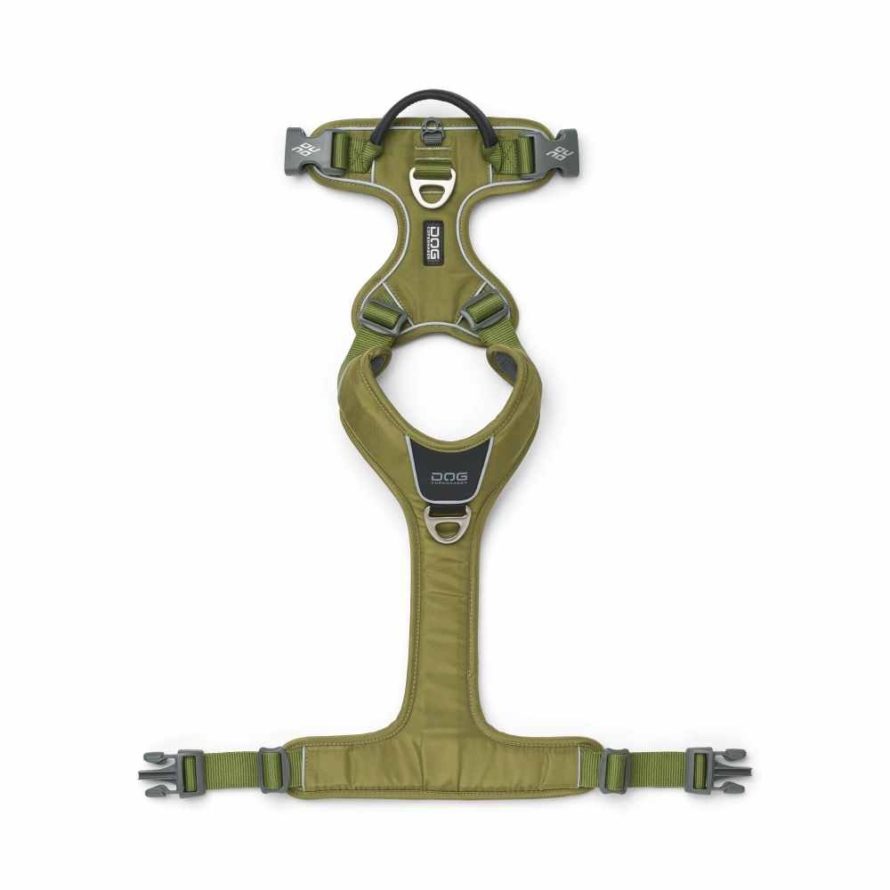 Een comfortabel en sterk groen hondentuig, voor de actieve hond, met een zachte voering en een ergonomisch ontwerp. Versie 2024.