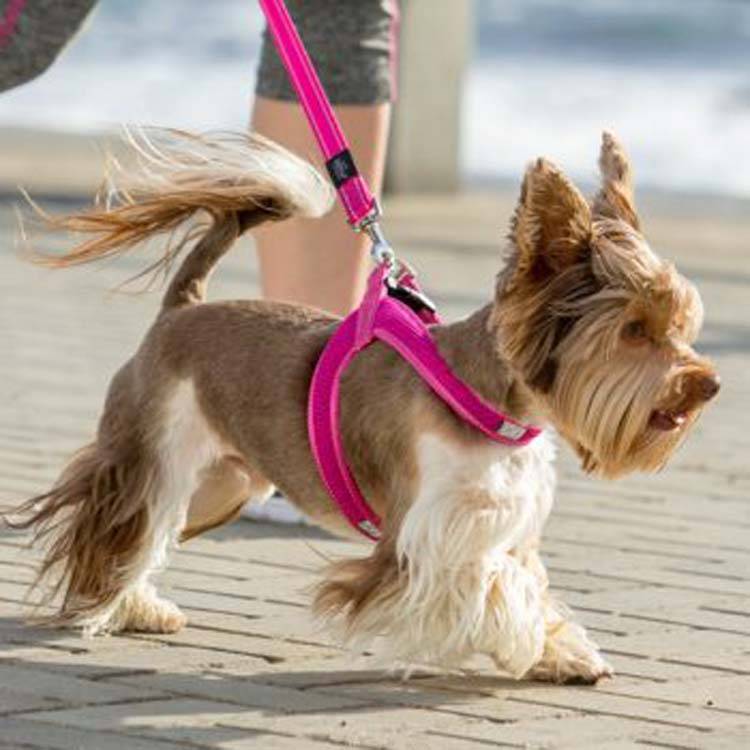 Een mooi nylon hondentuigje, een instapmodel, voor de kleinere honden met een kliksluiting op de rug. In roze.
