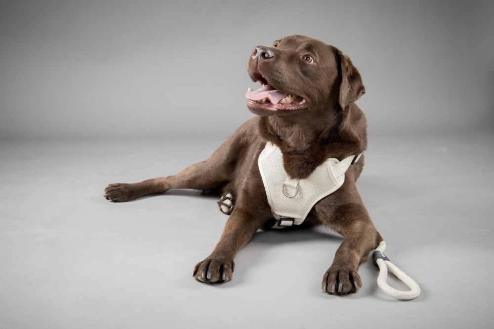 Een sterk en comfortabel beige hondentuig, voorzien van kliksluiting. Het verstelbare hondentuig is gemaakt van natuurlijk linnen. verschillende maten leverbaar.
