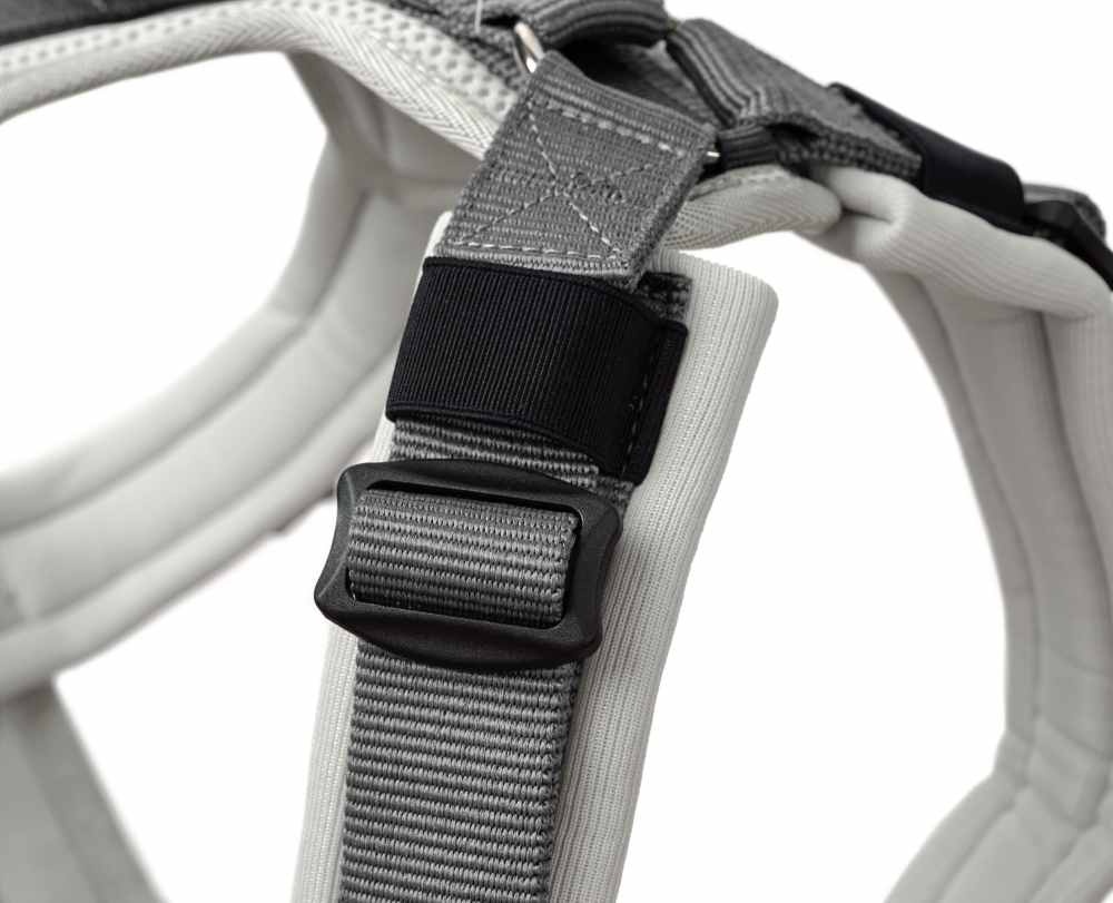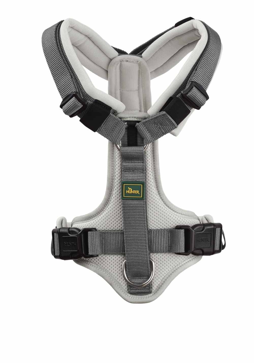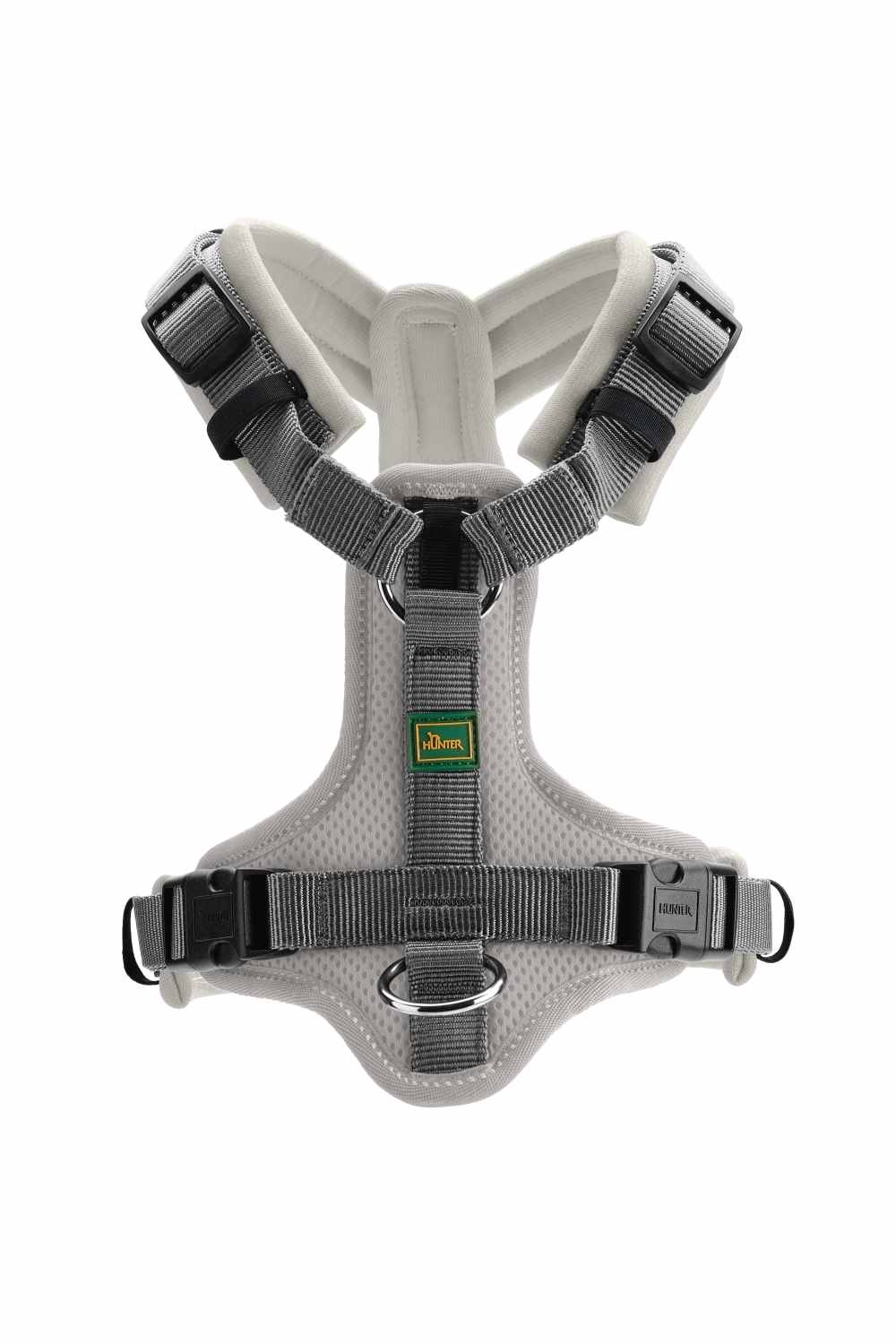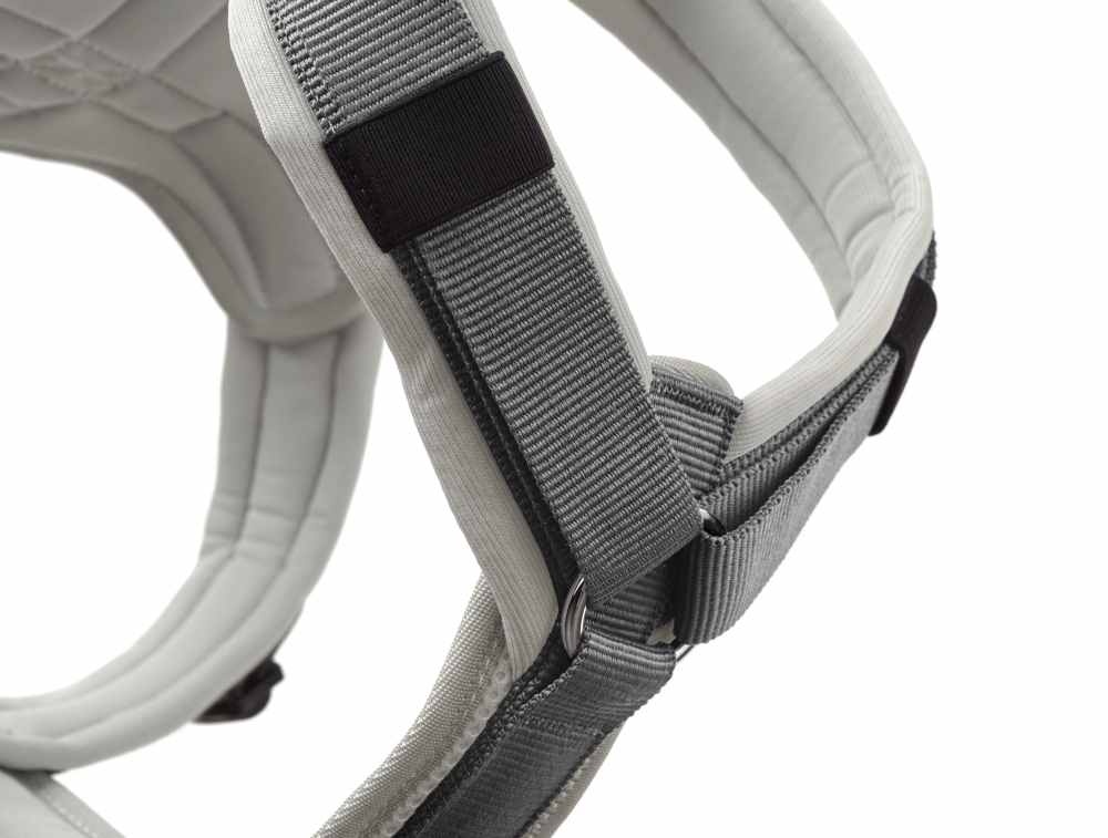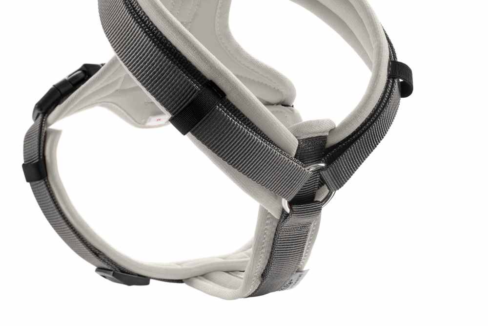 Een gevoerd lichtgrijs Y hondentuig met een uitstekende pasvorm dat u op vier plaatsen kunt verstellen. In vele maten leverbaar.