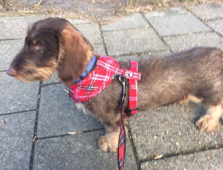 Dit is een comfortabel katoenen hondentuigje dat in een rode Schotse ruit is uitgevoerd. Het tuigje heeft aan beide zijden een kliksluiting en is voorzien van een verstelbare borstband. U trekt het tuigje over de kop van de hond aan. De bijpassende riem 140 cm x 15 mm kunt u direct bijbestellen.