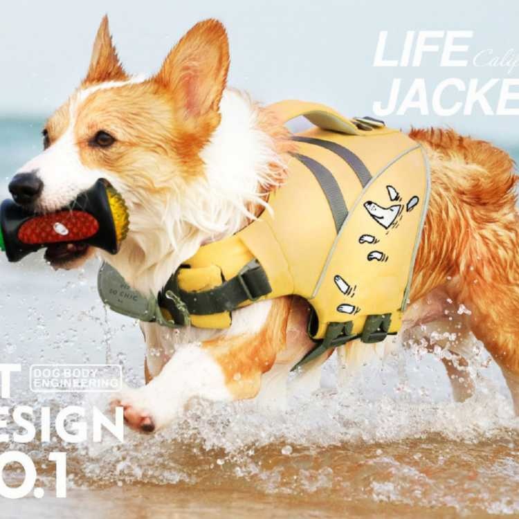 Een superieur geel hondenzwemvest dat is ontworpen voor honden die ervan genieten om met hun baasjes op het water te zijn. Het zwemvest biedt een hoog drijfvermogen zodat het een uitstekend hulpmiddel is voor de hond bij het zwemmen.