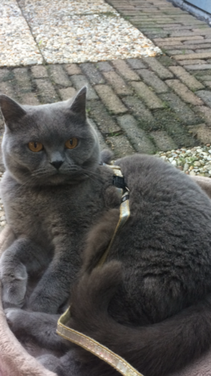 Dit is een goudkleurig kattentuigje van 100% polyester en biedt u een print met glitter en glamour. De reflecterende tape zorgt voor extra zichtbaarheid bij slecht licht. Het tuigje is voorzien van twee veiligheidssluitingen: