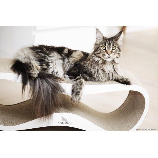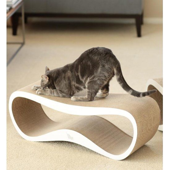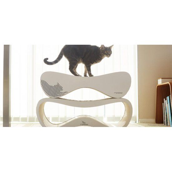Een modern en fraai design wit krabmeubel, dat volledig met de hand wordt gemaakt. Het is gemaakt van golfkarton, waar katten helemaal dol op zijn. Het prachtige design maakt het meubel tot een heuse blikvanger in elk interieur.
