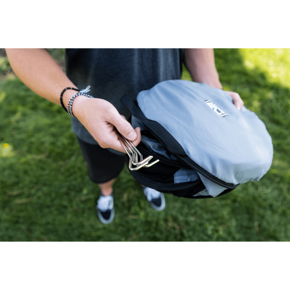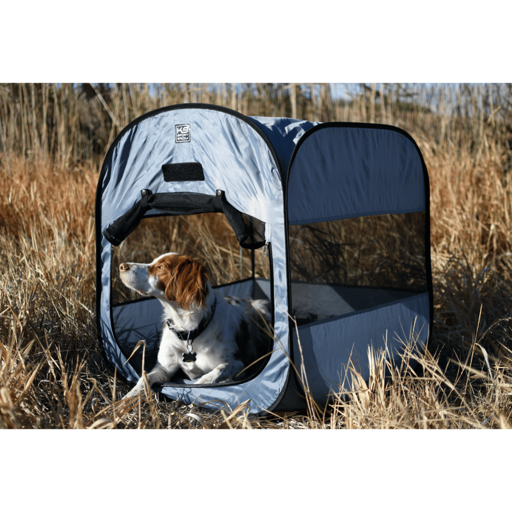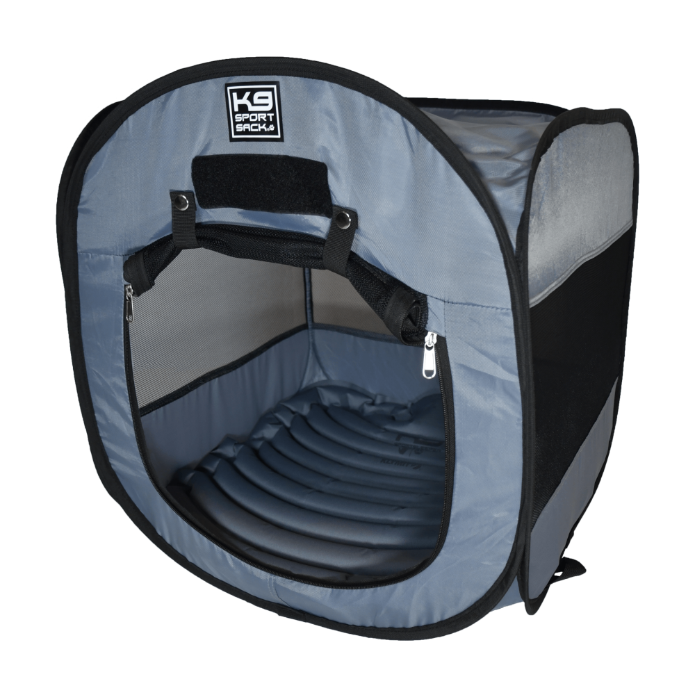 De nieuw ontworpen reisbench voor de hond van K9 Sport Sack is perfect geschikt voor buitenavonturen en reizen! Hij klapt binnen enkele seconden in en uit en past gemakkelijk in elke rugzak of koffer. Nieuw is dat 4 aluminium haringen worden meegeleverd om de bench in de grond te bevestigen! Op het strand, in de bergen of rondom het huis, deze bench biedt uw hond een plek om te rusten. Deze tent biedt het comfort van een kennel, zonder het gedoe van een groot, omvangrijk en zwaar gevaarte.