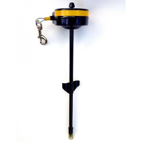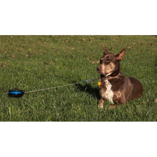 Dit is een handige rollijn voor gebruik buitenshuis. U zet de hond vast aan deze intrekbare rollijn nadat u de rollijn met behulp van de grote pin in de bodem stevig heeft vastgezet. De staalkabel kan 360 graden in het rond roteren, trekt strak maar blijft comfortabel voor de hond. De lijn kan niet in de knoop schieten.
