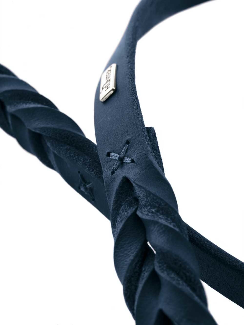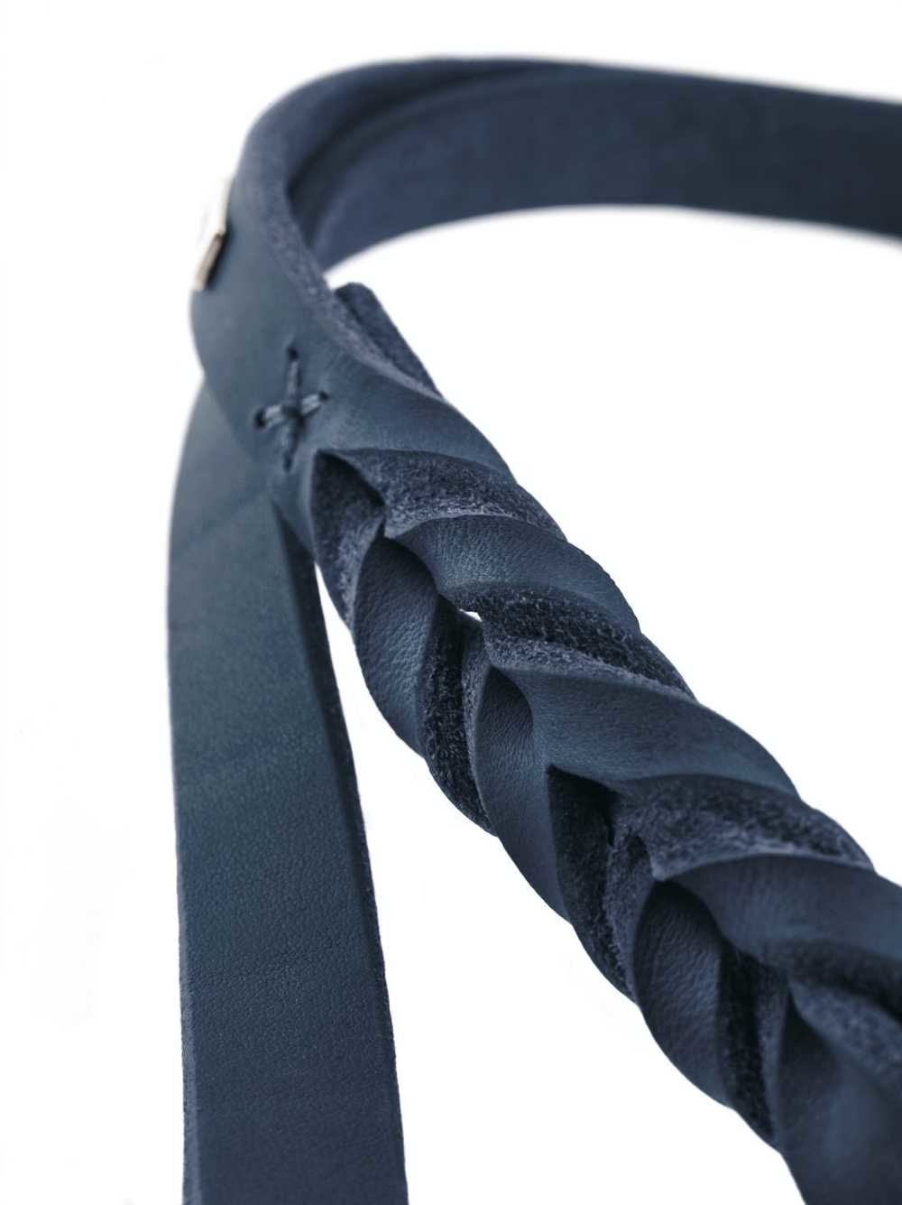 Een fraaie verstelbare donkerblauwe hondenriem van zacht rundleer. Afmetingen: 200 cm lang, 18 mm breed.